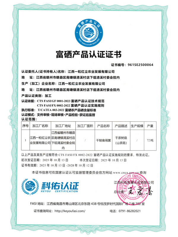 江西一粒紅塵農業發展有限公司是一家總部位于江西省贛縣的現代農業多元型企業,專注于食用菌的研發、種植、深加工、貿易、研教培農文旅等全產業鏈發展。公司秉承“健康綠色、共享共贏”的核心價值觀,致力于引領鄉村振興之路,旨在成為......